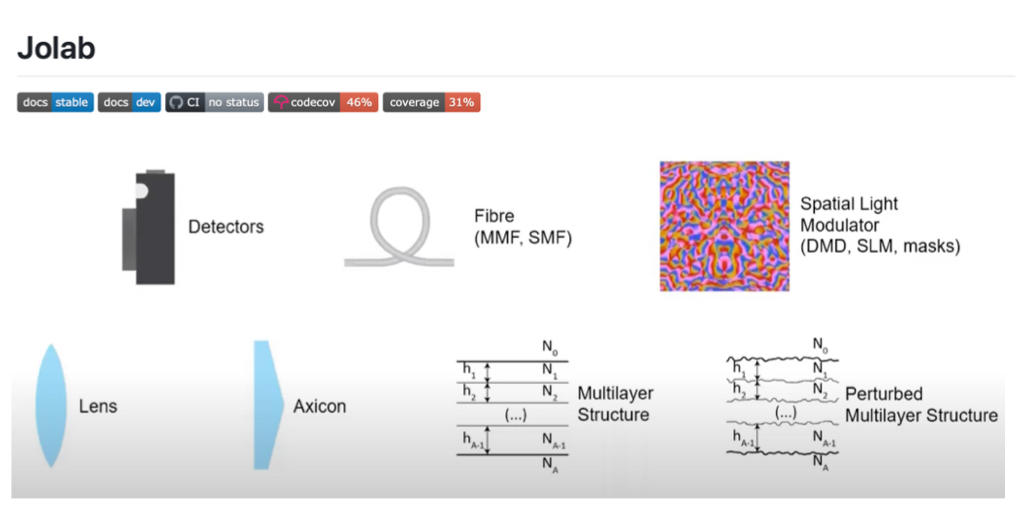 Jolab is a free and open-source Julia package to simulate light propagation in optical systems. The package implements rigorous, full-wave optical models to simulate light propagation in setups. The package is built to be easily usable.